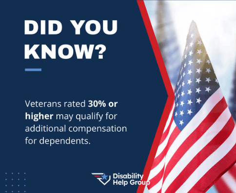 You may have noticed that at the 10% and 20% disability rating level, the monthly benefit is the same across all three columns. That’s because disabled veterans only receive additional compensation for dependents if they are rated at 30% or higher.