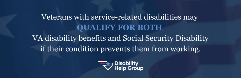 Can a Veteran Receive Both VA and Social Security Benefits? Veterans can qualify for both VA and Social Security benefits. Frequently, veterans apply for both VA and Social Security benefits. However, VA and Social Security benefits have different requirements.