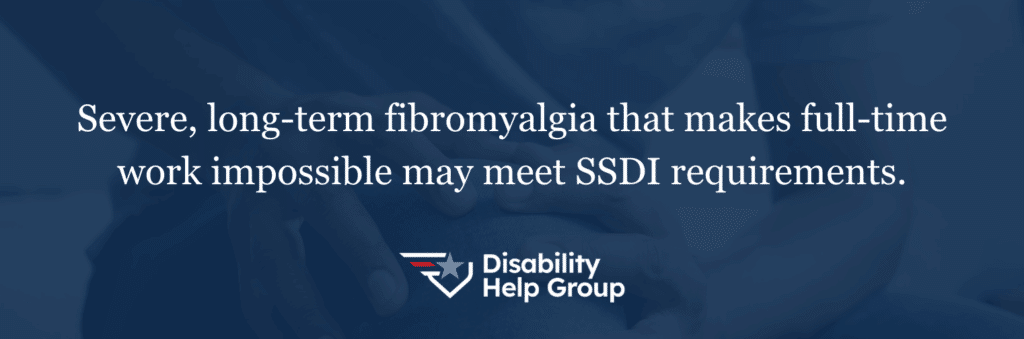 Most SSDI applications are denied at first. The more clear, complete, and on-point your application and supporting documentation are, the better your chances of approval. At Disability Help Group, we have extensive experience with disability benefits claims and appeals. We know what type of evidence is necessary to support your claim, and how to present it effectively. To learn more about how we can help you pursue disability benefits for fibromyalgia, call (800) 800-3332 right now, or contact us here for a FREE case evaluation.