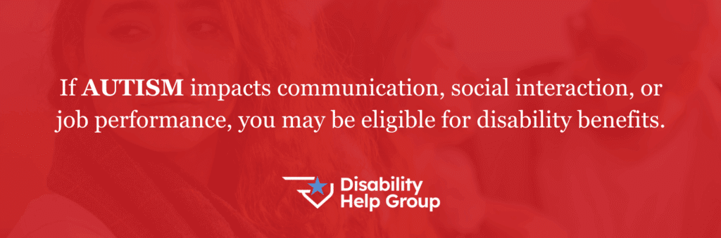 SSD benefits for autism or any other condition are determined based on the applicant’s Social Security work history. The amount of the monthly SSD benefit is the same as the amount the applicant would receive in retirement benefits if they had reached full retirement age before taking benefits. You can find out the approximate amount of benefits you may qualify for on the SSA website. SSD recipients also qualify for Medicare coverage after two years.